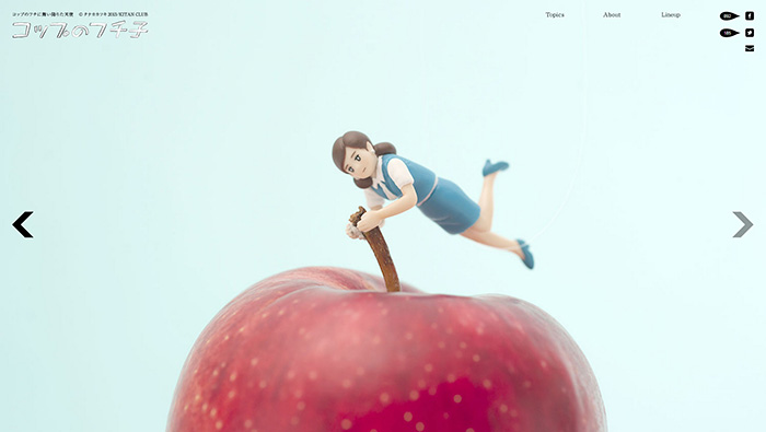 「タナカカツキ」さんと「奇譚クラブ」さんが共同開発した、フチで遊ぶ新感覚シチュエーションフィギュア「コップのフチ子」の公式サイトを制作しました。様々なビジュアルでフチ子の美しさを訴求するとともに、今までになかった「ひっかけて楽しむ」という遊びのノビシロの広さと、それに対するユーザーのイマジネーションを掻き立てることに全力を尽くしたサイトです。各ページごとに自由度の高いレイアウトで、JavaScriptによる動きやギミックを多数盛り込んだ構成ながらも、全ページWord-Press対応と、非常に運用性の高い構造になっています。